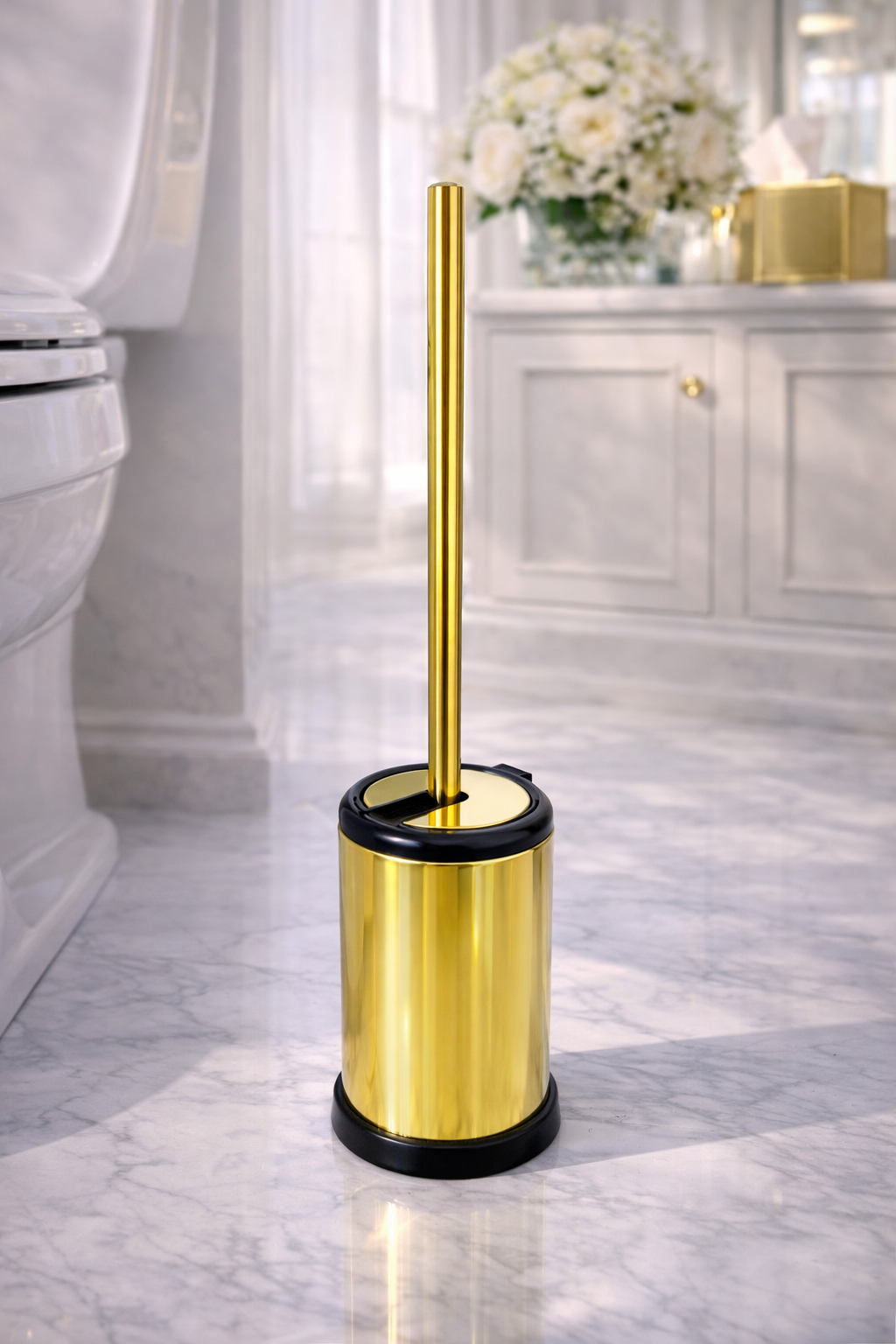Abrilhantando seu lavabo ou banheiro, esta escova sanitária, escovada e revestida em nitreto de titânio dourado (PVD – Physical Vapor Deposition) de alta durabilidade e antimicrobiano, é a peça mais funcional, prática e delicada que cumpre o que promete.