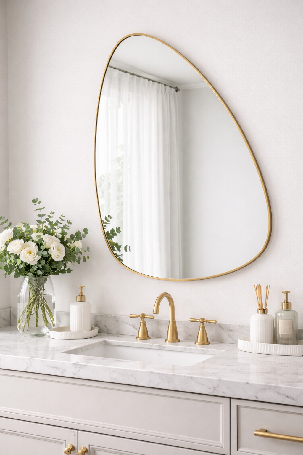 Espelho Orgânico Aurora com Borda Dourada em Metal – Fineza