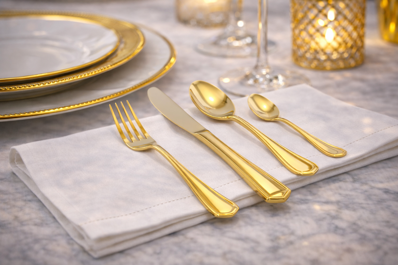 Faqueiro Victoria Dourado em Aço Inox – Fineza