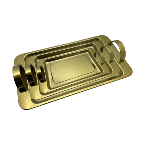 Kit Alberia 3 Bandejas Douradas em Aço Inox com Alças Laterais – Fineza