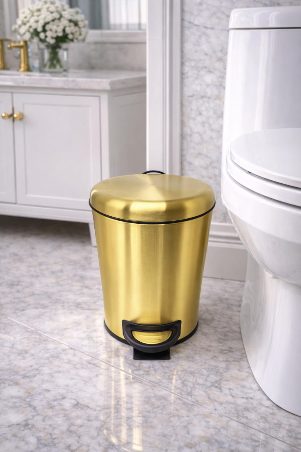 Lixeira Ártemis Redonda Dourada Fosca em Aço Inox com Pedal – Fineza
