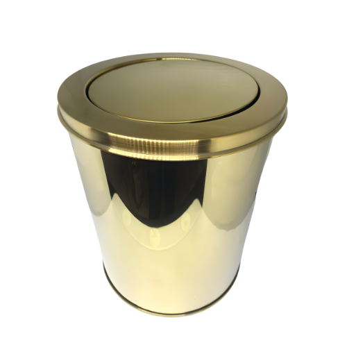 Lixeira Pandora Redonda Dourada em Aço Inox com Tampa Basculante – Fineza