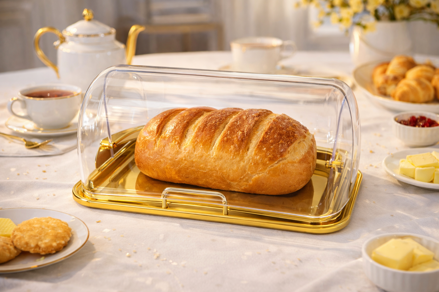 Porta Pão Luxor Dourado em Acrílico e Aço Inox – Fineza
