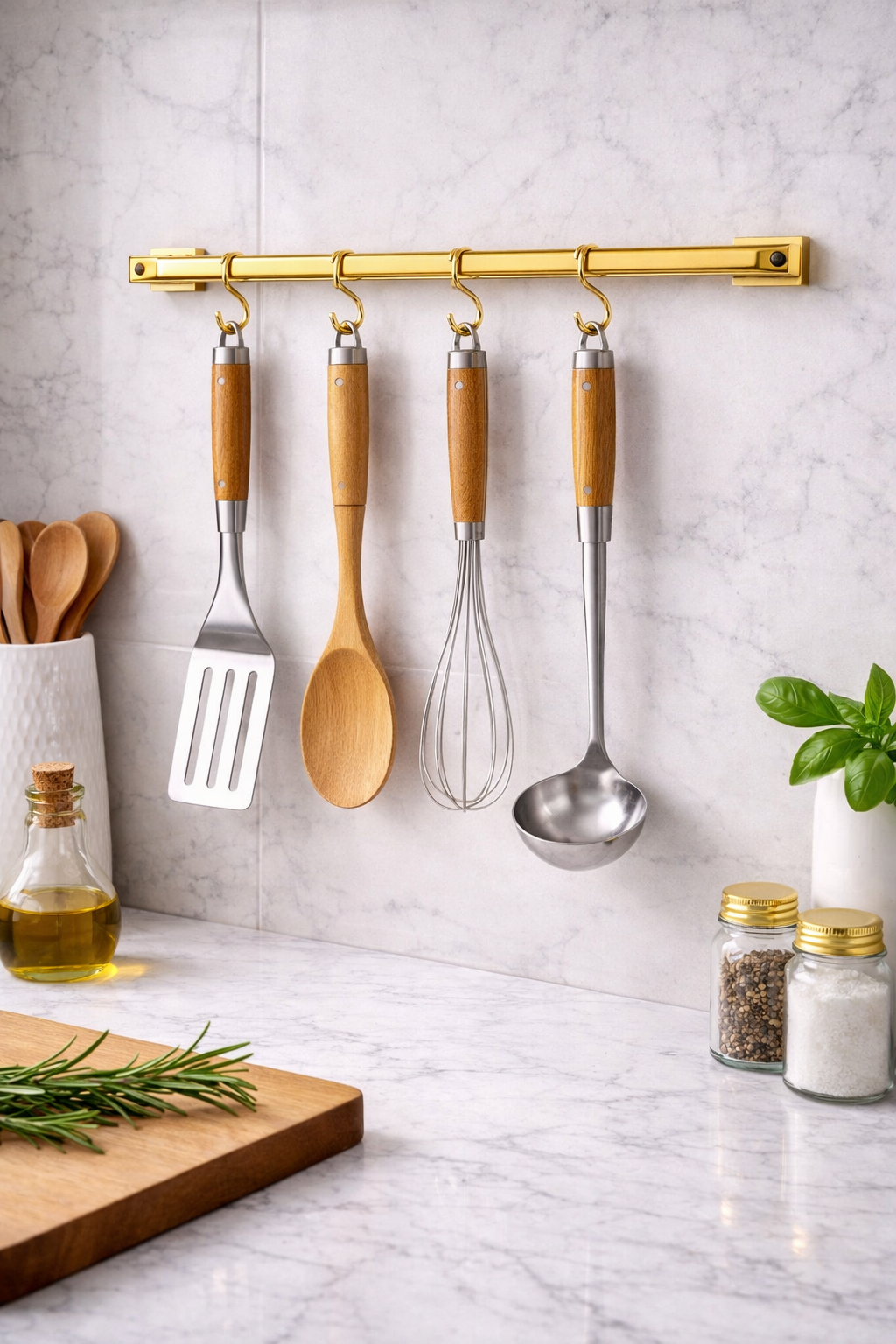 Porta Utensílios de Parede Lena Dourado em Aço Inox 40cm – Fineza